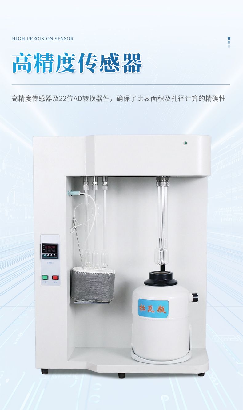 多個高精度的傳感器及22位的AD轉換器件,確保了比表面積及孔徑計算的精確性。