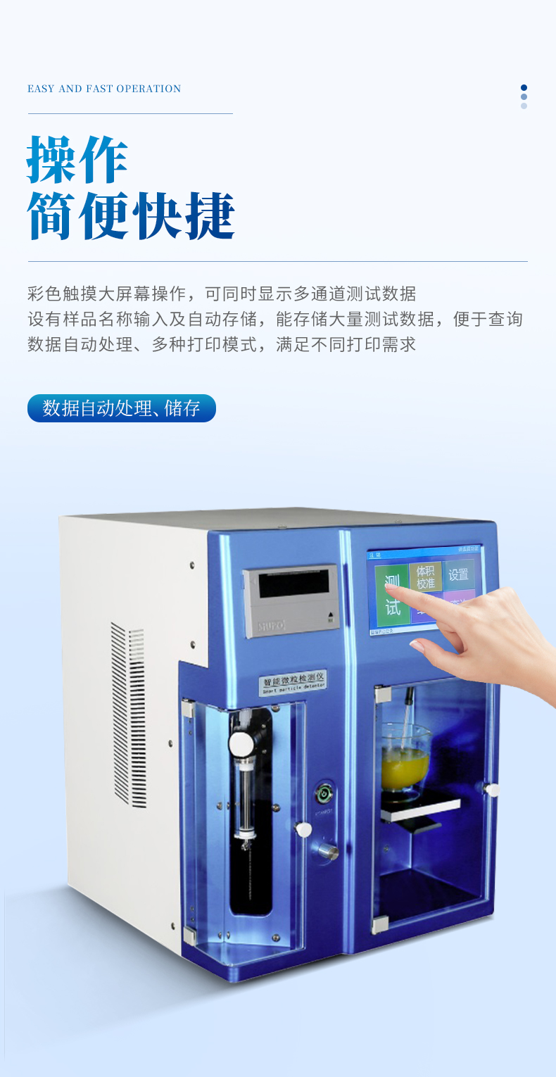 l設有小容量注射液(小針劑)專用測試程序,可根據小針劑的規格進樣,并在測試完成后自動轉換成容器微粒的大小及數量,符合《中國藥典》及國際通用要求,