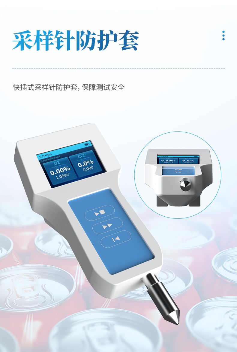 2.包裝容器:適用于罐裝咖啡、罐裝奶粉、罐裝食品、奶酪、罐頭、利樂包裝、飲料等包裝容器內氣體中的O2含量的測試;
