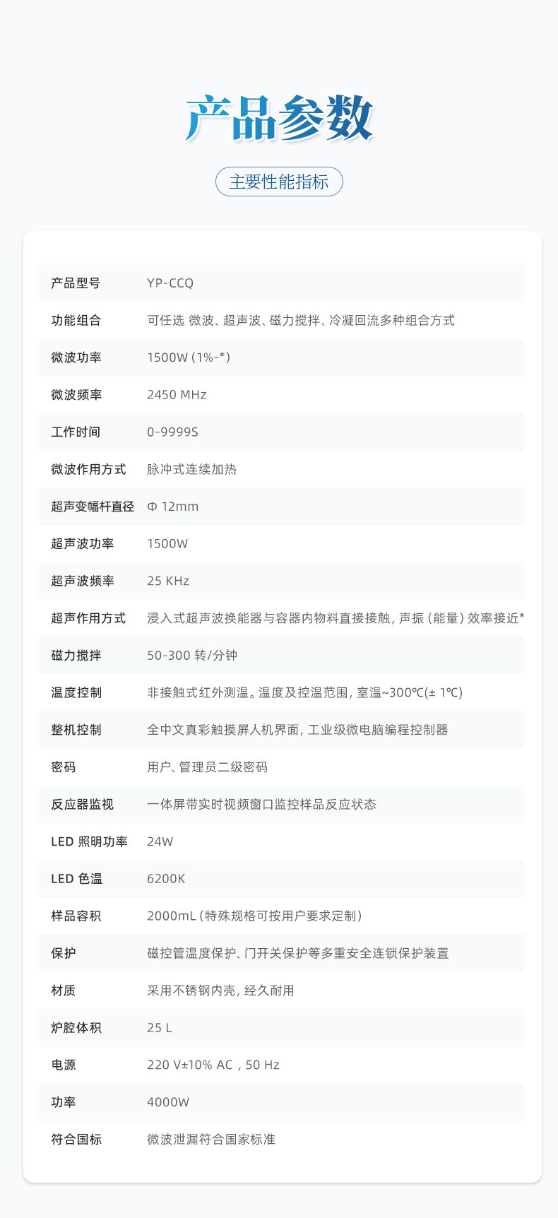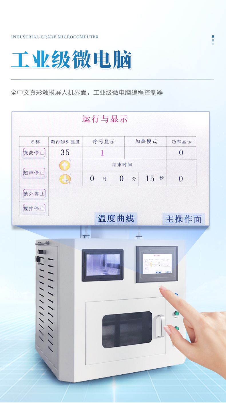 ●微波功率:1500W(1%-*);微波頻率:2450 MHz;工作時間:0-9999S