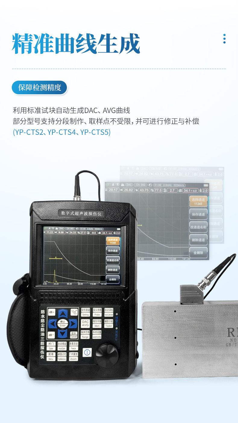 4、利用標準試塊自動生成DAC、AVG曲線,取樣點不受限制,并可進行補償與修正