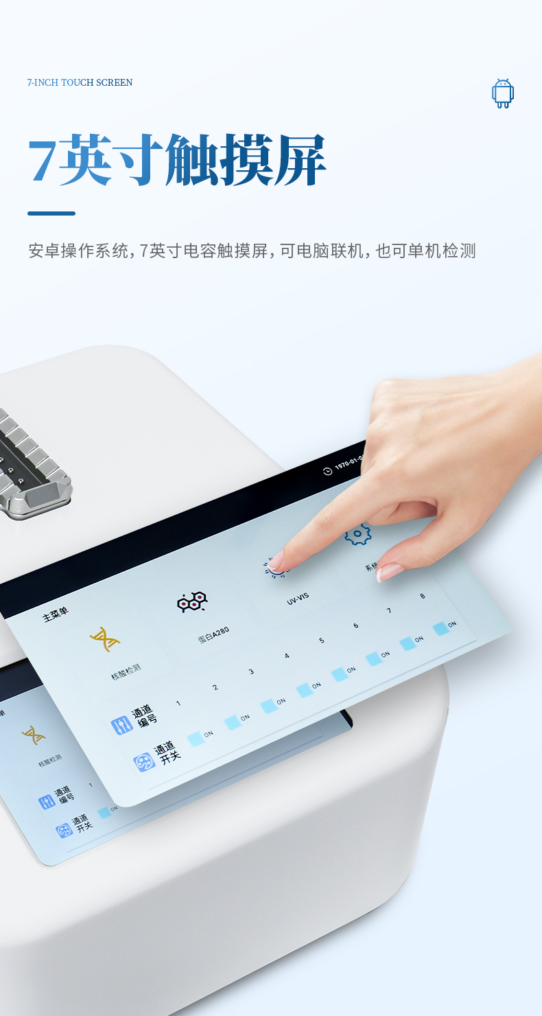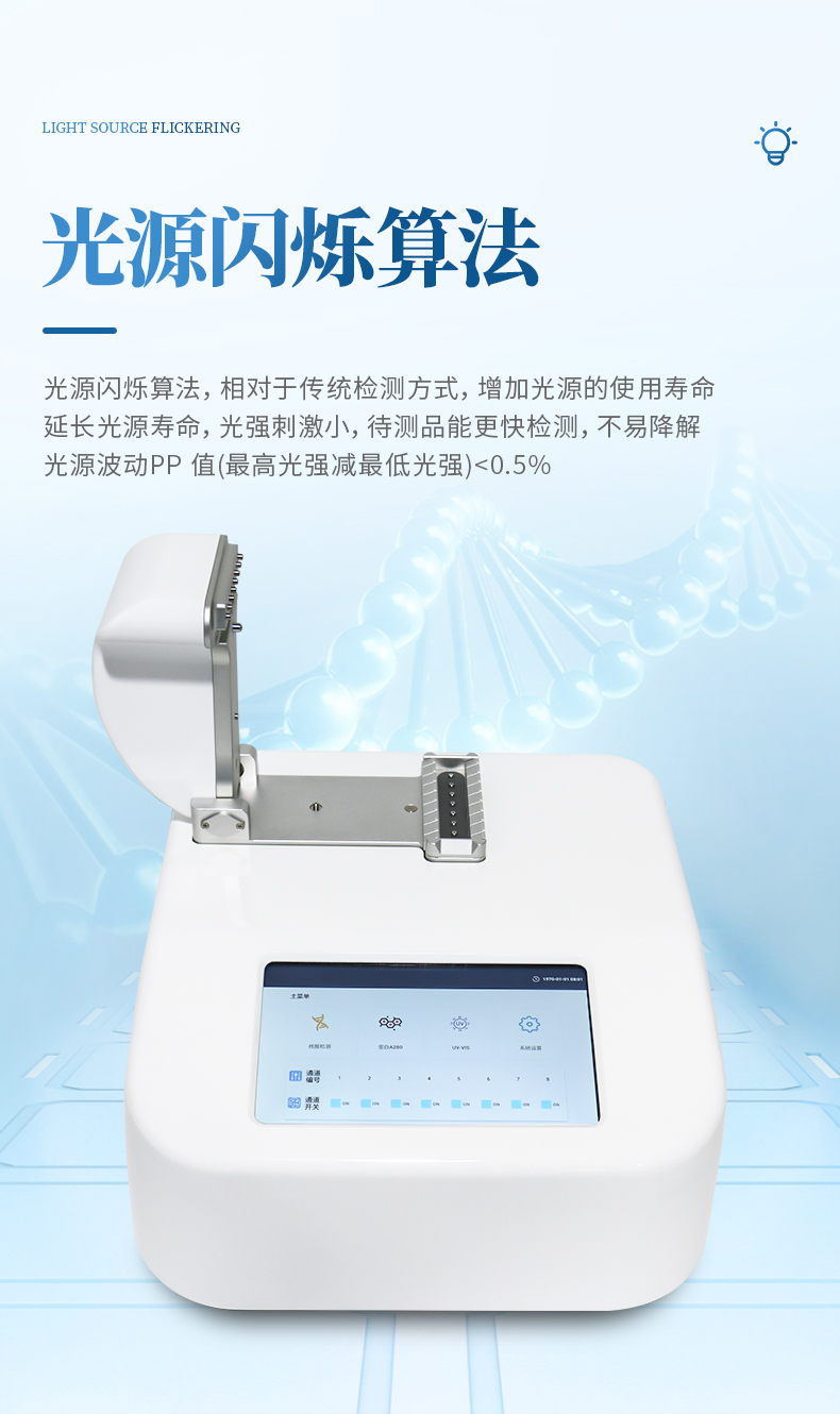 超微量紫外可見分光光度計單機和PC全部兼備的1-8可任意開啟的多通道全波長(190-850NM)微量分光光度計。可快速準確的檢測核酸、蛋白質和細胞溶液,核酸檢測每次測量所需要的樣品量僅需1至2UL即可。直接將樣品點于加樣臺上。無需比色杯或毛細管等附件。測量結束后,可以選擇直接將樣品擦去或者再用移液器回收樣品。所有步驟簡單快速,一氣呵成。可應用在臨床疾病診斷、輸血安全、法醫學鑒定、環境微生物檢測、食品安全檢測、分子生物學研究等多種領域。