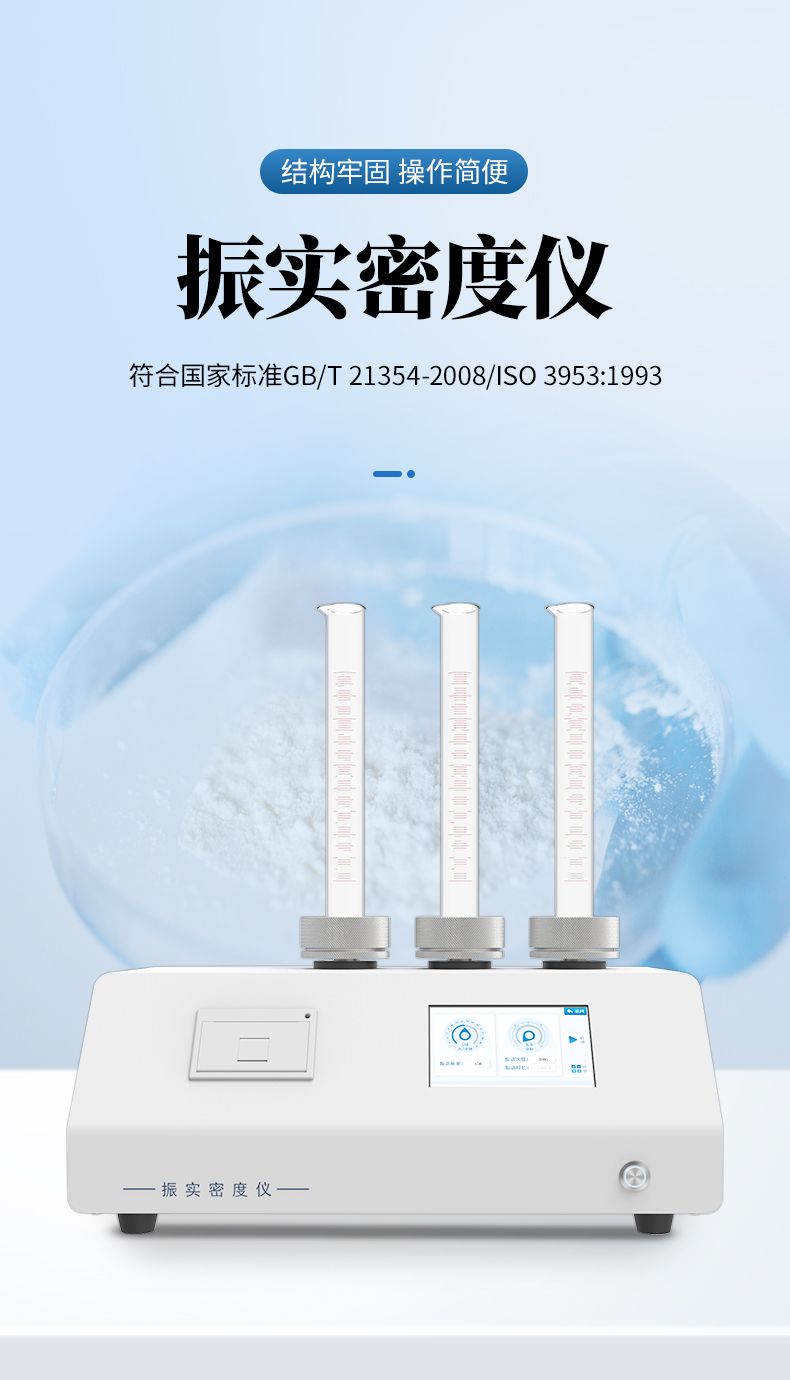 振實密度儀是一種通過模擬實際工況中的振動條件,精確測定粉末或顆粒材料在振實狀態下密度的高精度儀器。其核心功能是評估材料在壓實過程中的體積變化,為工業生產、研發和質量控制提供關鍵數據支持。