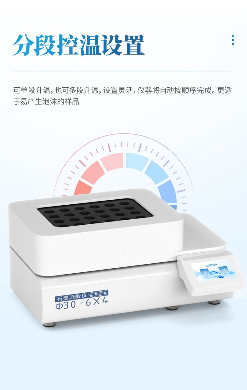 分段控溫設置,即可單段升溫,也可多段升溫,設置靈活,儀器將自動按順序完成。更適于易產生泡沫的樣品。