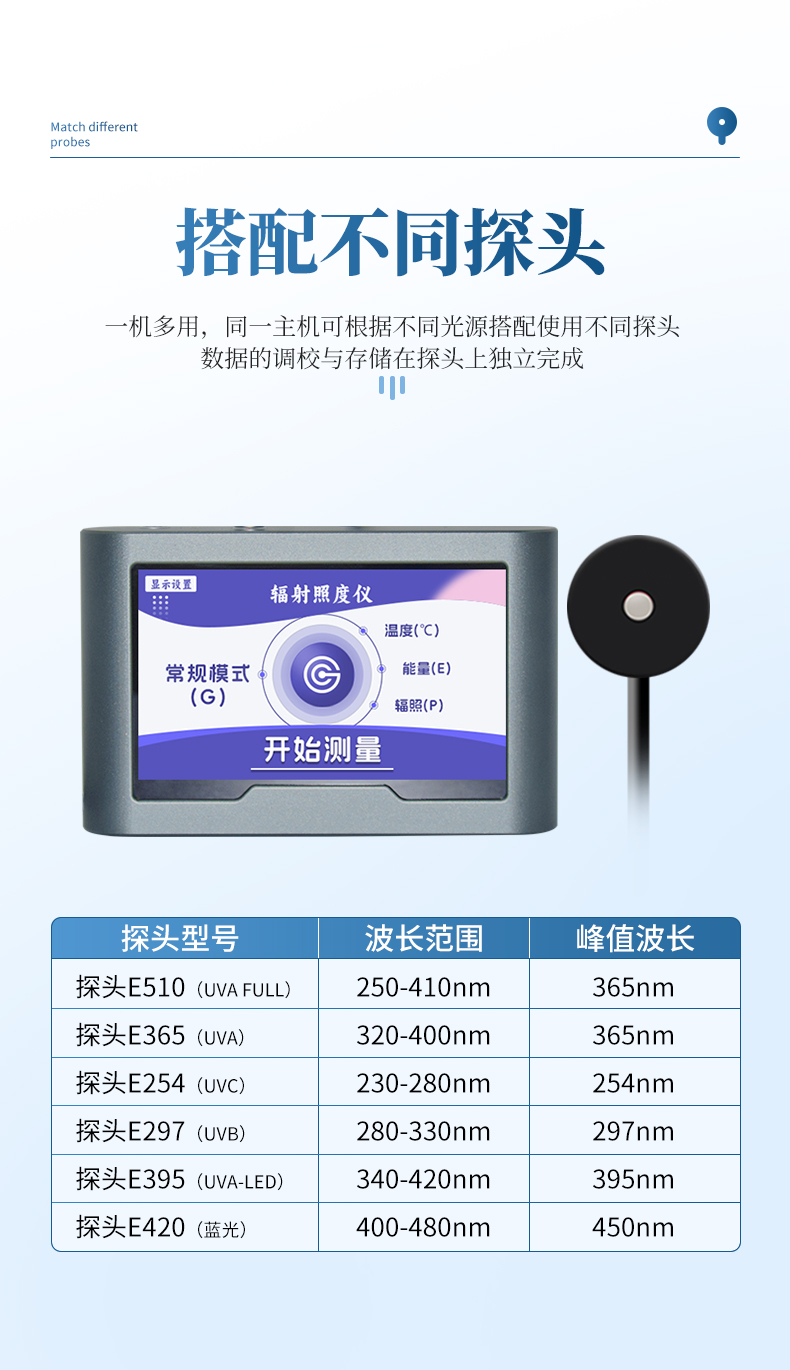 | 探頭E395(UVA-LED) | 340-420nm | 395nm | |