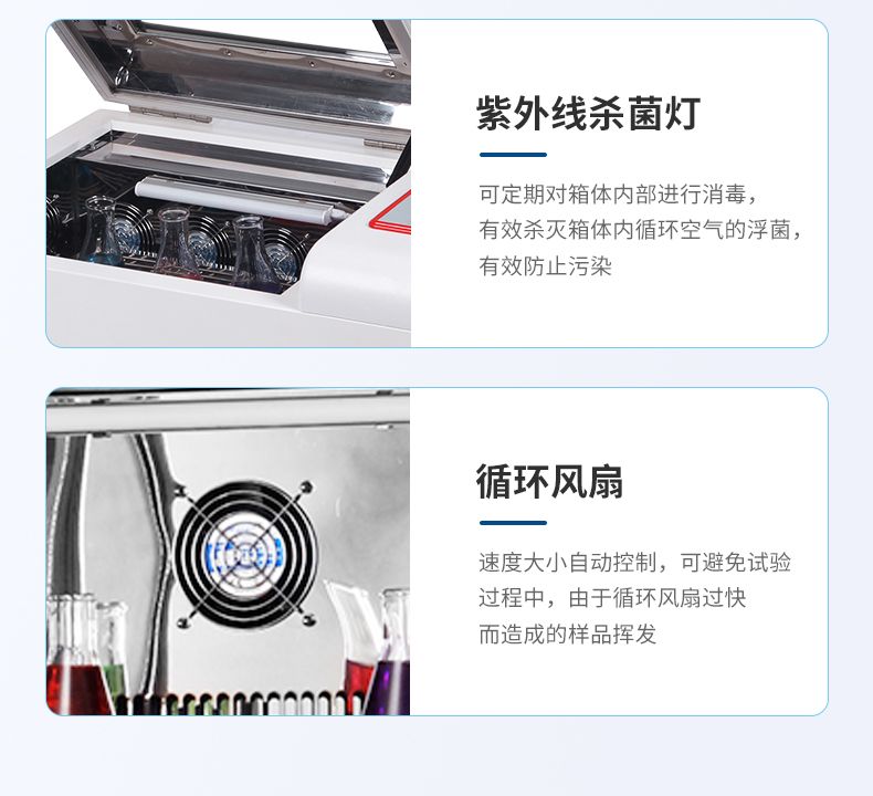 雙層恒溫振蕩器具有占地小,裝載量大的特點.該型搖床裝備PID控溫系統和無刷直流電機控制系統.可滿足對溫度和速度有較高要求的用戶需求.