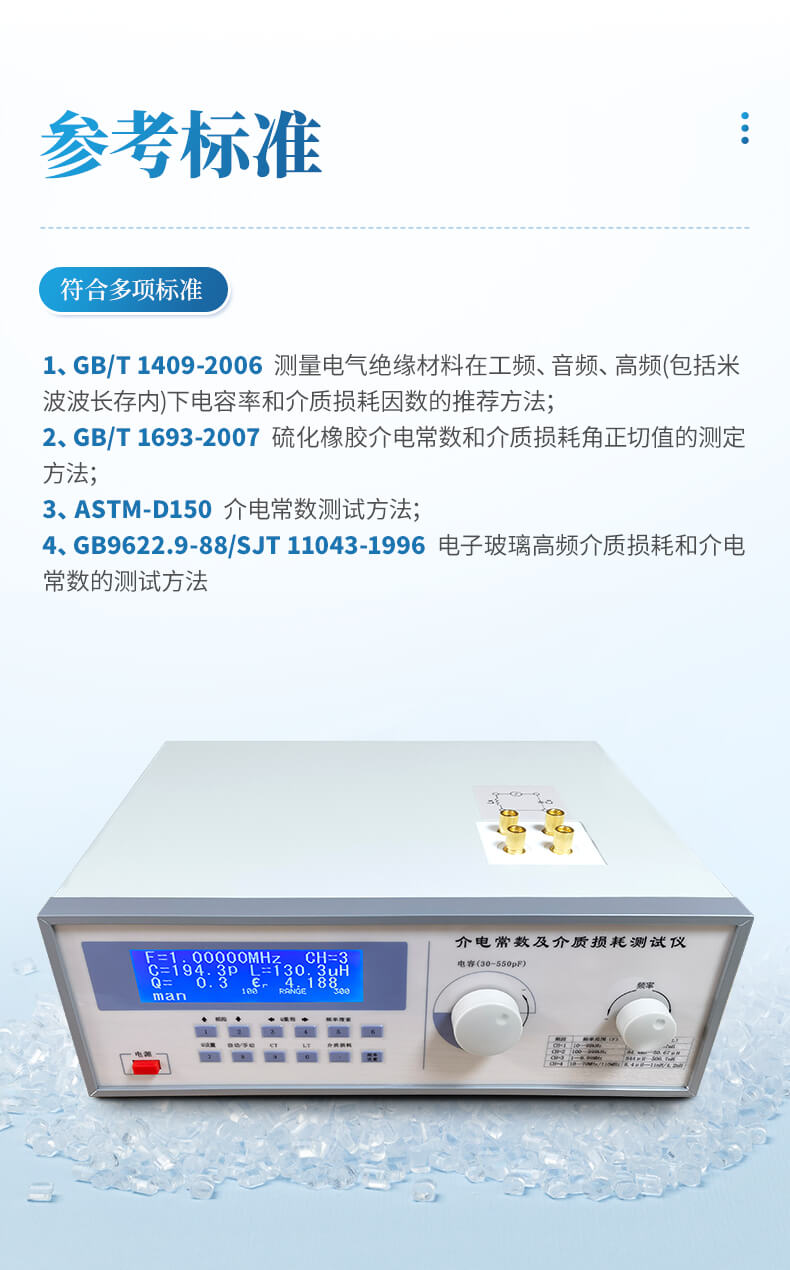 u GB/T 1409-2006 測量電氣絕緣材料在工頻、音頻、高頻(包括米波波長存內(nèi))下電容率和介質(zhì)損耗因數(shù)的推薦方法;