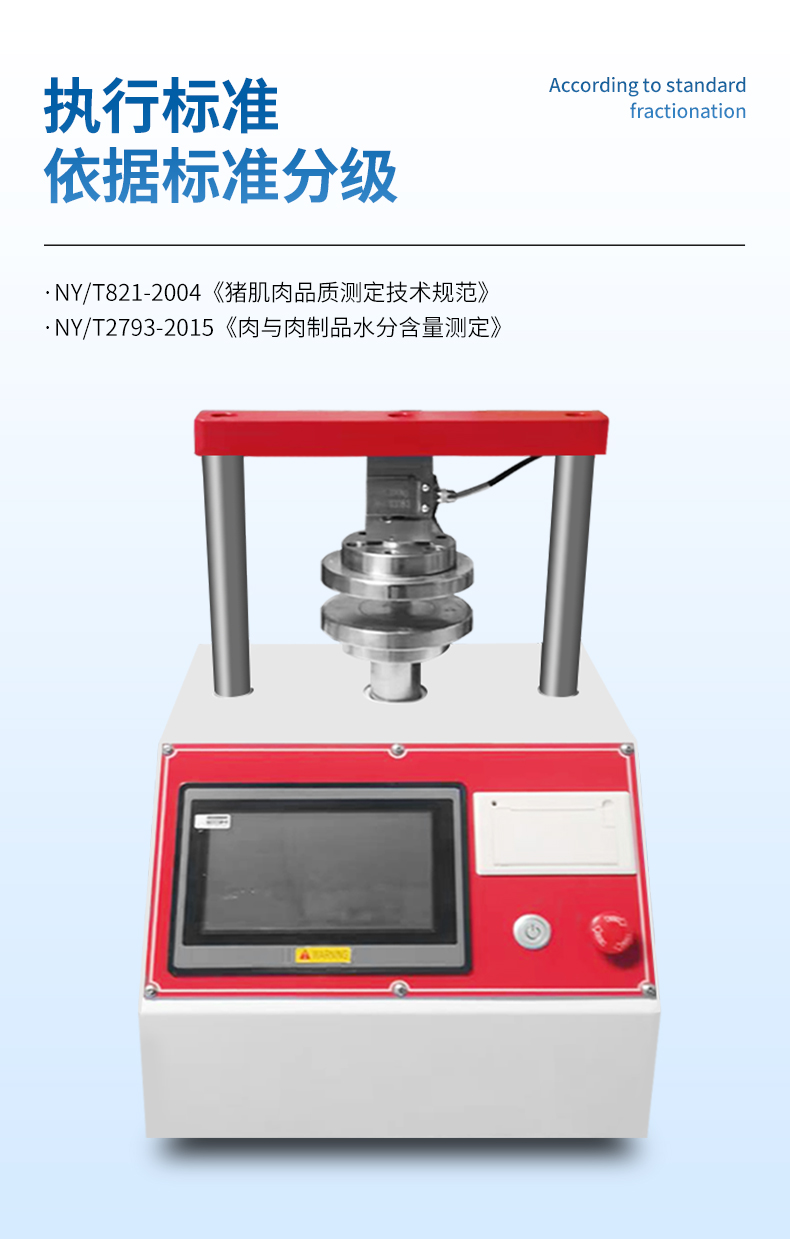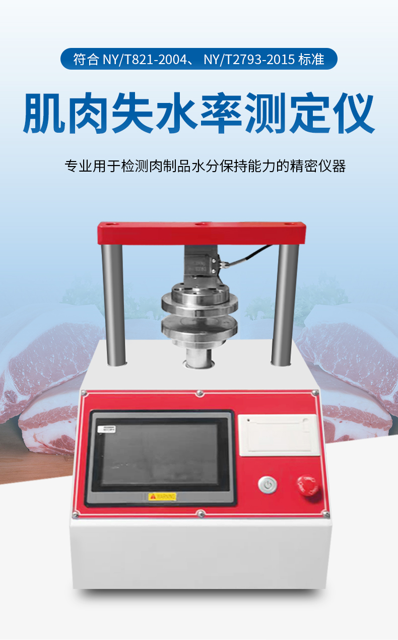 肌肉系水力的高低,取決于宰后肌肉的 PH。國內通常采用加壓重量法來度量肌 肉失水率,以估計肌肉的系水力,即失水率越高,系水力越低。系水力(%)=(壓前肉樣重-壓后肉樣重)一壓前肉樣重 x100%。系水力:指肌肉蛋白質在外力作用 下保持水分的能力采用貯存損失 熟肉率及失水率測定肌肉的系水力。應用于食品包裝廠家、質檢、商檢、大學、 科研等部門。