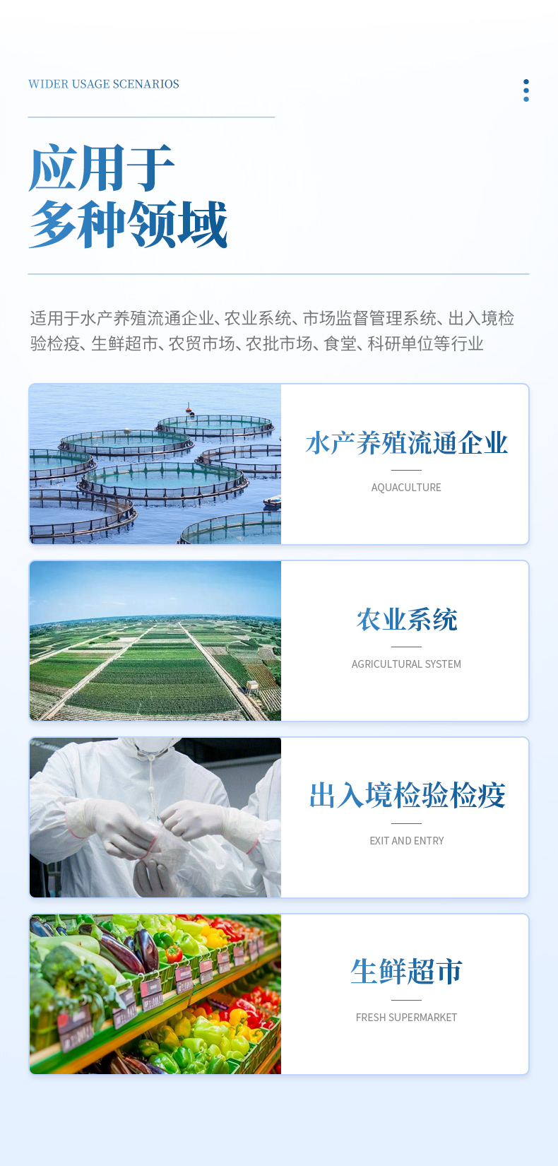 抗生素熒光定量檢測儀是一款熒光定量檢測食品抗生素的儀器設備,主要檢測呋喃唑酮、呋喃它酮、呋喃妥因、呋喃西林、磺胺類藥物、氟喹諾酮類、氯霉素、四環素、氟苯尼考、喹乙醇等畜禽、水產品藥物殘留的定量檢測;樣品前處理簡單,整個檢測過程7min,可以多樣品、多種類同時進行檢測,大大提高批量定量檢測的效率;產品適用于水產養殖流通企業、農業系統、市場監督管理系統、出入境檢驗檢疫、生鮮超市、農貿市場、農批市場、食堂、科研單位等行業。