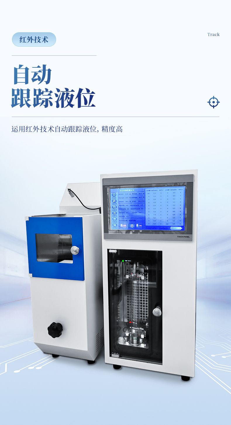 8.儀器實(shí)現(xiàn)自動(dòng)控制電爐功率,自動(dòng)跟蹤液位,回收室和冷凝管自動(dòng)控制溫度,自動(dòng)計(jì)算。