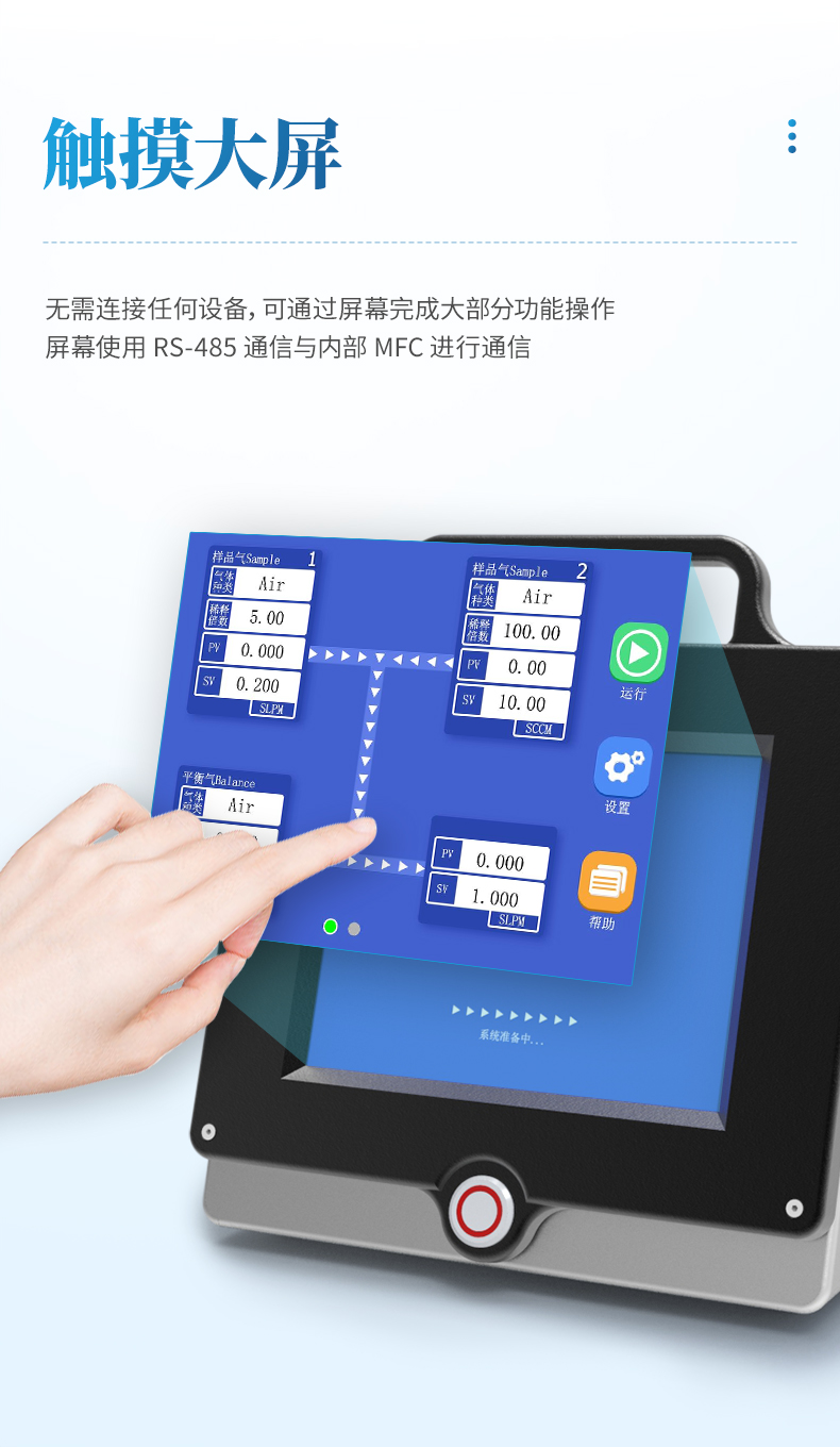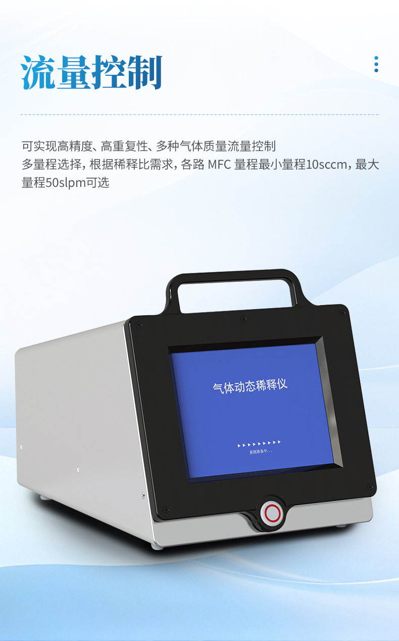多種量程選擇 ---根據(jù)稀釋比需求各路 MFC 量程最小量程 10sccm,最大量程 50slpm 可選。