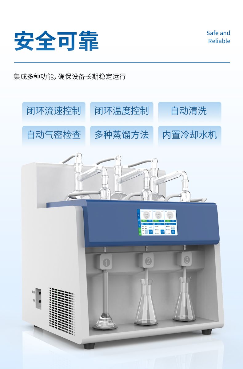 2.多通道獨(dú)立控制:3個(gè)加熱單元各自獨(dú)立,配備防倒吸、防過量蒸餾及防干燒保護(hù)。