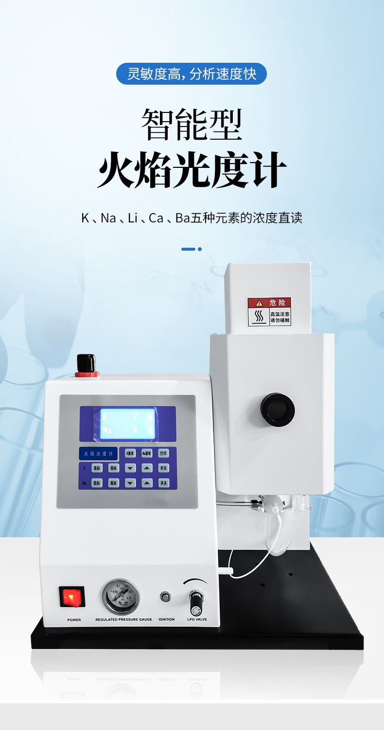 YP系列多元素火焰光度計是全新設計的儀器。它具有體積小、操作方便及穩定可靠的優點。全系列都標配離子檢測熄火保護裝置,安全可靠。廣泛應用于農業肥料、土壤、水泥、陶瓷等行業及硅酸工業的分析和測定;醫療衛生的病理研究。YP系列火焰光度計使用液化氣為燃氣。