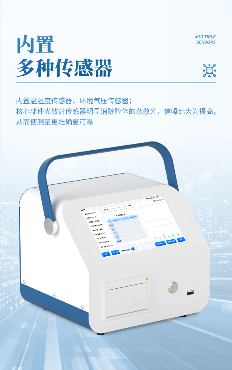 3、核心部件光散射傳感器明顯消除腔體的雜散光,信噪比大為提高。從而使測量更準確更可靠。