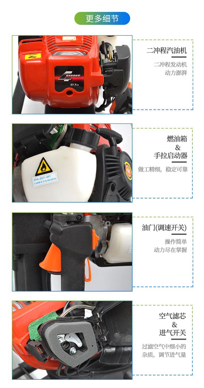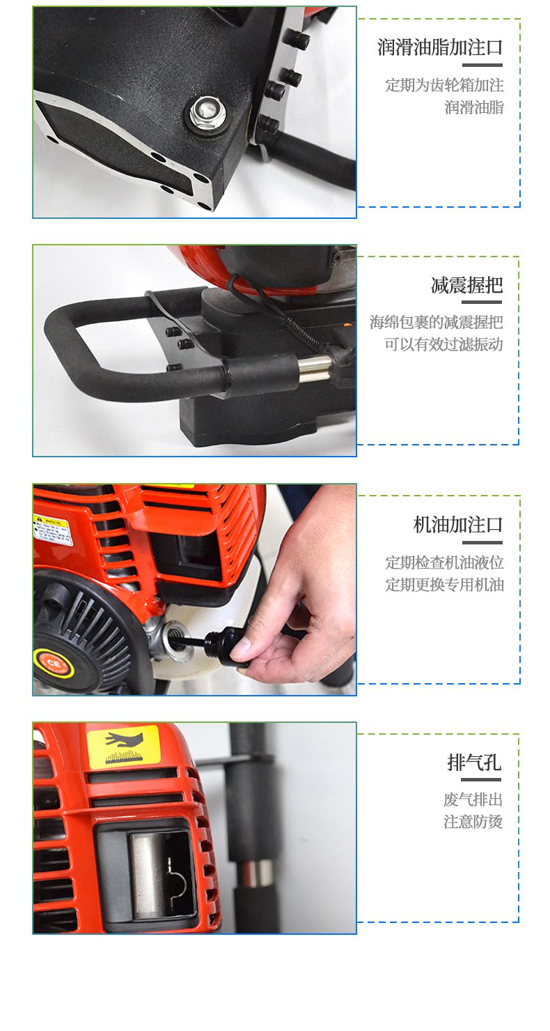 ● 手拉式啟動,即停觸發按鈕,彈簧隔離抗震手柄!