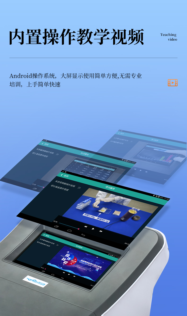 7、使用簡單方便:儀器內(nèi)置檢測項目操作視頻,無需專業(yè)培訓(xùn),邊觀看儀器內(nèi)置操作視頻,邊做實驗,上手簡單快速。