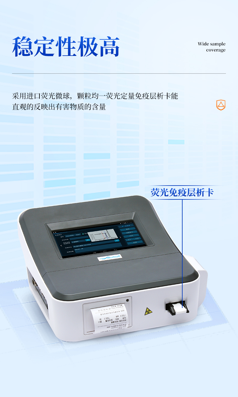 1、穩(wěn)定性極高:采用進(jìn)口熒光微球,顆粒均一,從源頭保證產(chǎn)品穩(wěn)定性好,批次內(nèi)、批次間重現(xiàn)性好。試劑條可常溫運存,無需冷藏。檢測后,試劑條烘干后可保存一年,實現(xiàn)結(jié)果的可追溯性。采用恒溫器裝置,一條一孔,自動計時,不受外界溫濕度影響,適用場地更廣。
