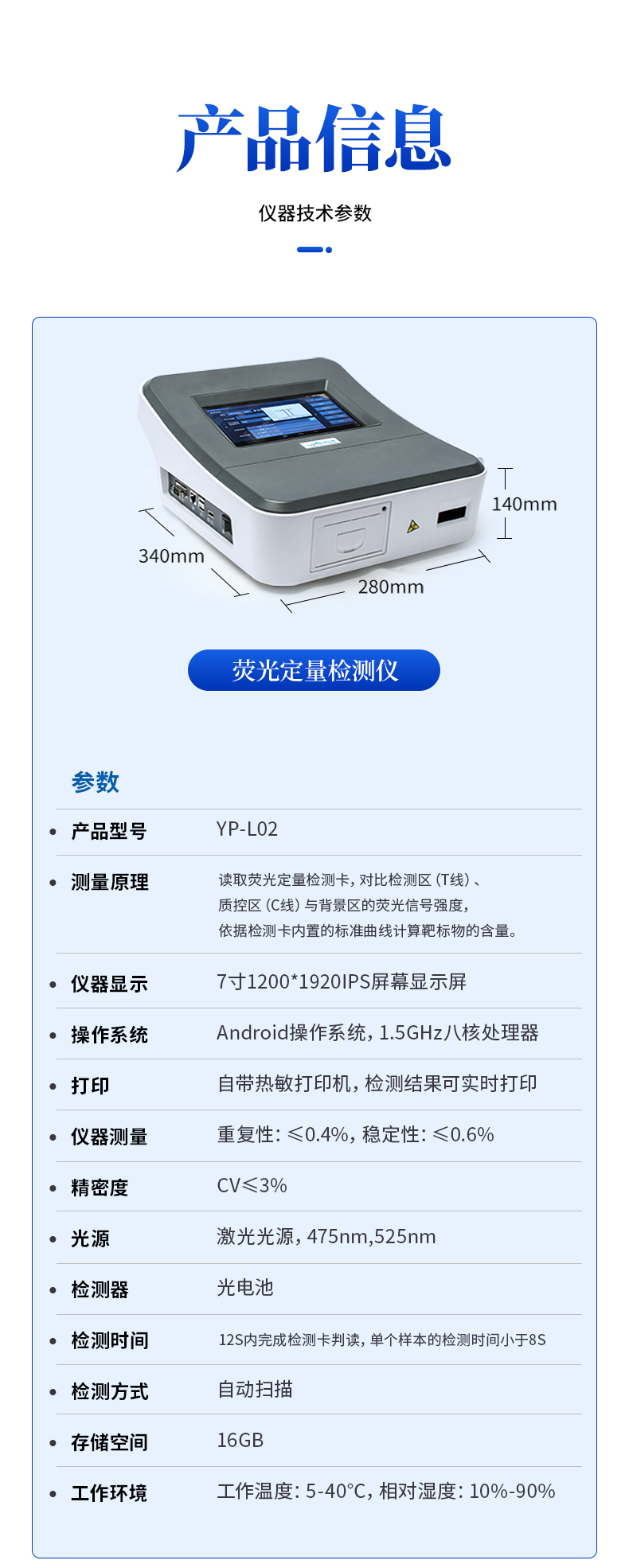 4、打印:儀器自帶熱敏打印機,檢測結(jié)果可實時打印。