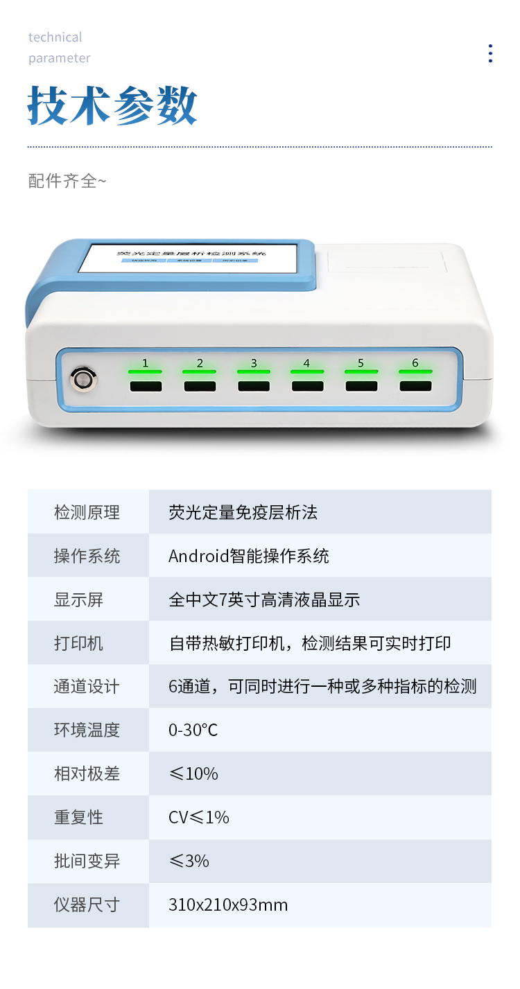 5、6通道設計,可同時進行一種或多種指標的檢測,6個獨立檢測單元,檢測效率高,并且互不干擾;