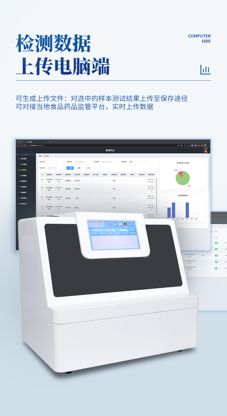 軟件:可生成上傳文件:對選中的樣本測試結果上傳至保存途徑。可對接當地食品藥品監管平臺,實時上傳數據。