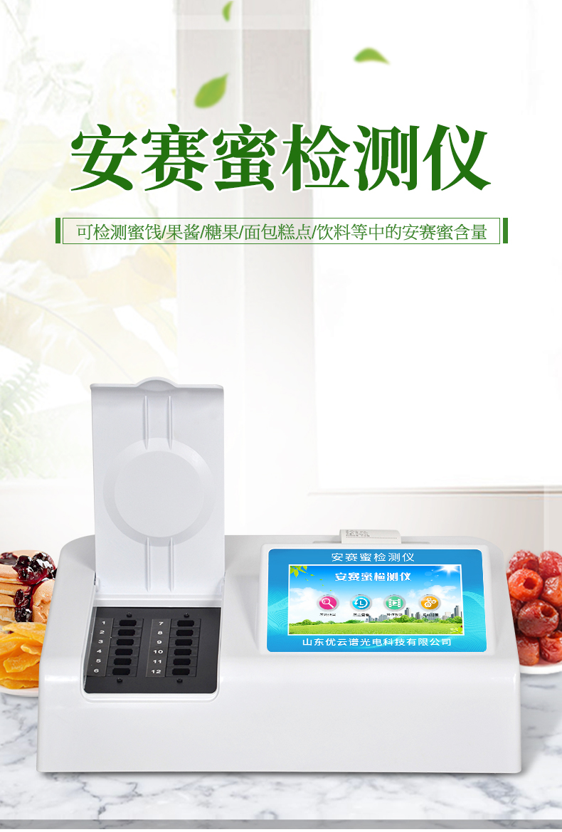 安賽蜜含量檢測儀能夠快速檢測蜜餞、果醬、糖果、面包糕點、飲料等中的安賽蜜含量。廣泛應用于各檢測單位等使用。
