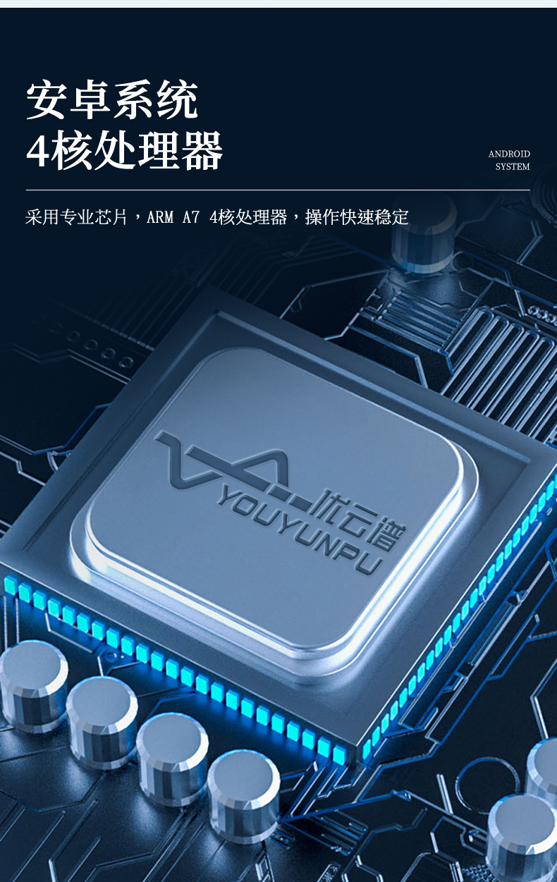 1、主控芯片采用ARM Cortex-A7,RK3288/4核處理器,主頻1.88Ghz,運轉速度更快速,穩定性更強。
