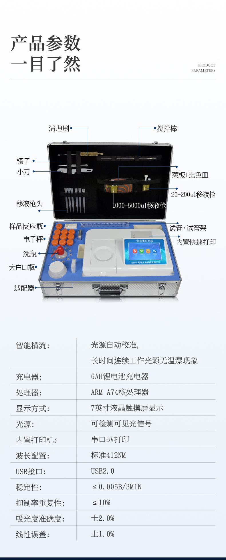 5、智能恒流穩壓,光強自動校準,長時間連續工作光源無溫漂現象。。