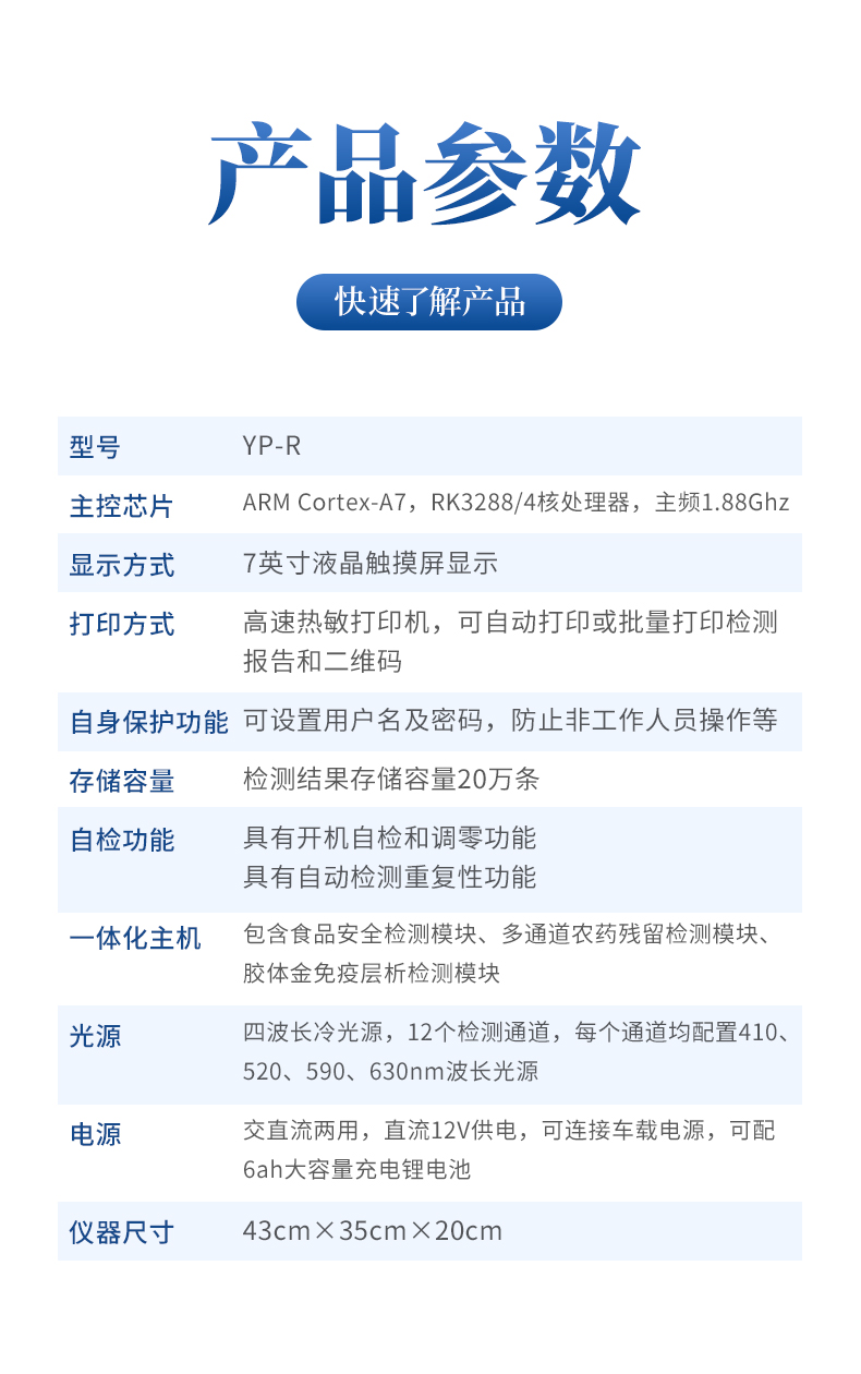 多功能肉制品安全檢測儀可快速檢測幾十種項目,包含各種獸藥殘留:抗生素類殘留、瘦肉精激素類殘留;病害肉診斷:肉類新鮮度、肉中組胺、揮發性鹽基氮;水產品安全篩查等現場的定性定量檢測。