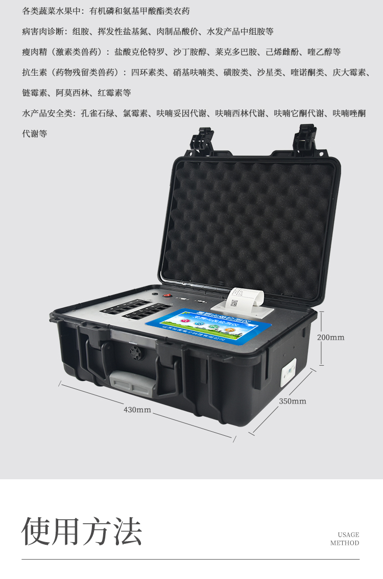該多功能食品安全檢測儀為集成一體化食品安全快速檢測分析設(shè)備,廣泛應(yīng)用于市場監(jiān)管局、食品肉產(chǎn)品深加工企業(yè)、學(xué)校食堂、衛(wèi)生部門、畜牧部門、屠宰場、檢驗檢疫部門等單位使用。