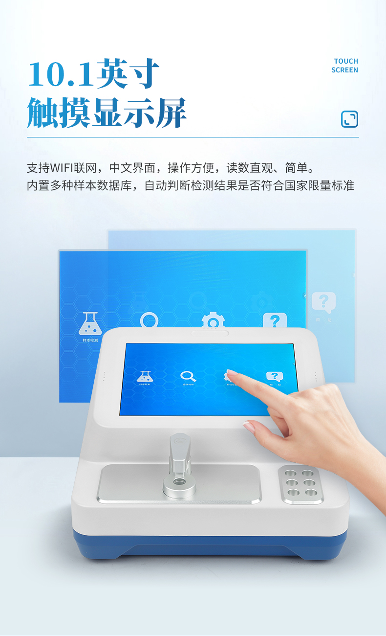 智能軟件系統:內置多種樣本數據庫,自動判斷檢測結果是否符合國家限量標準;支持聯網遠程升級,持續擴展檢測項目。
