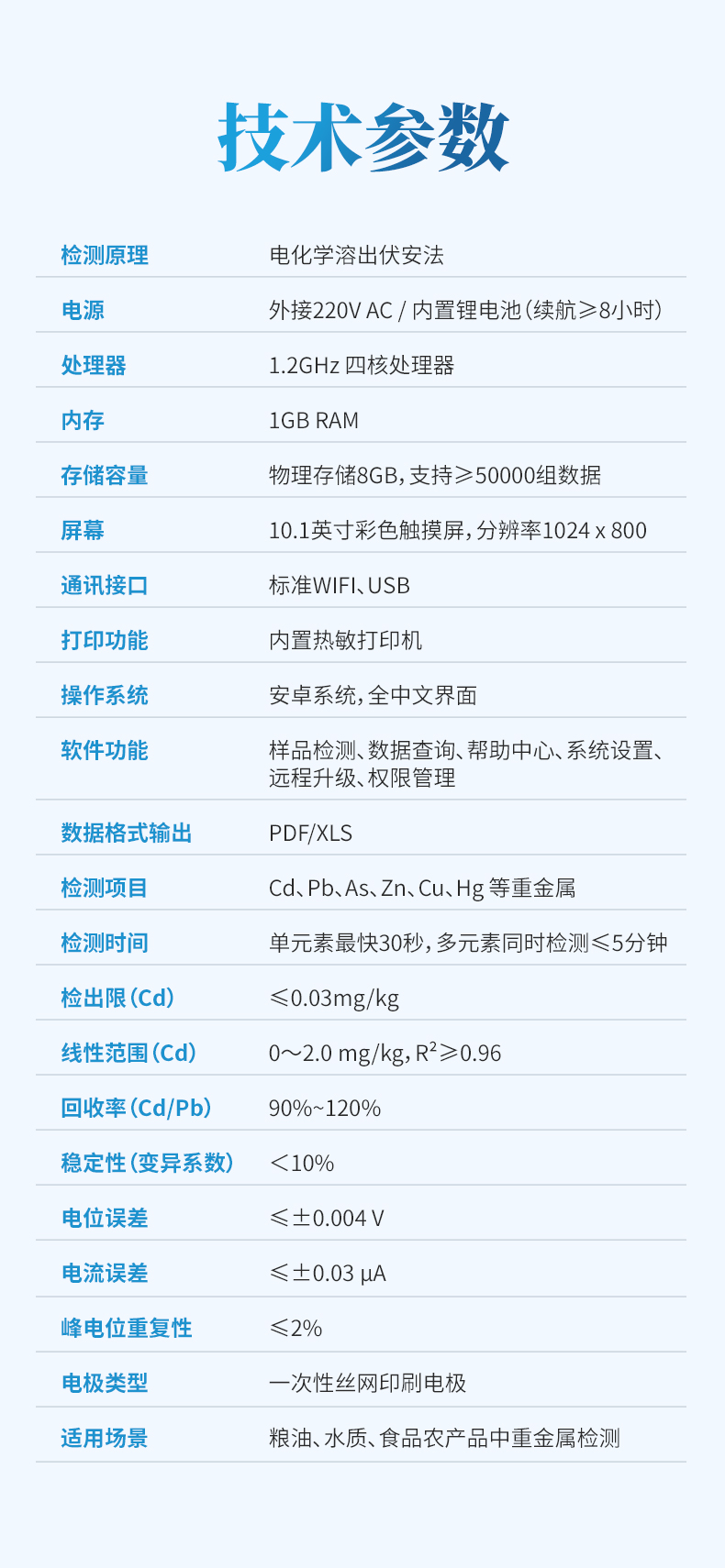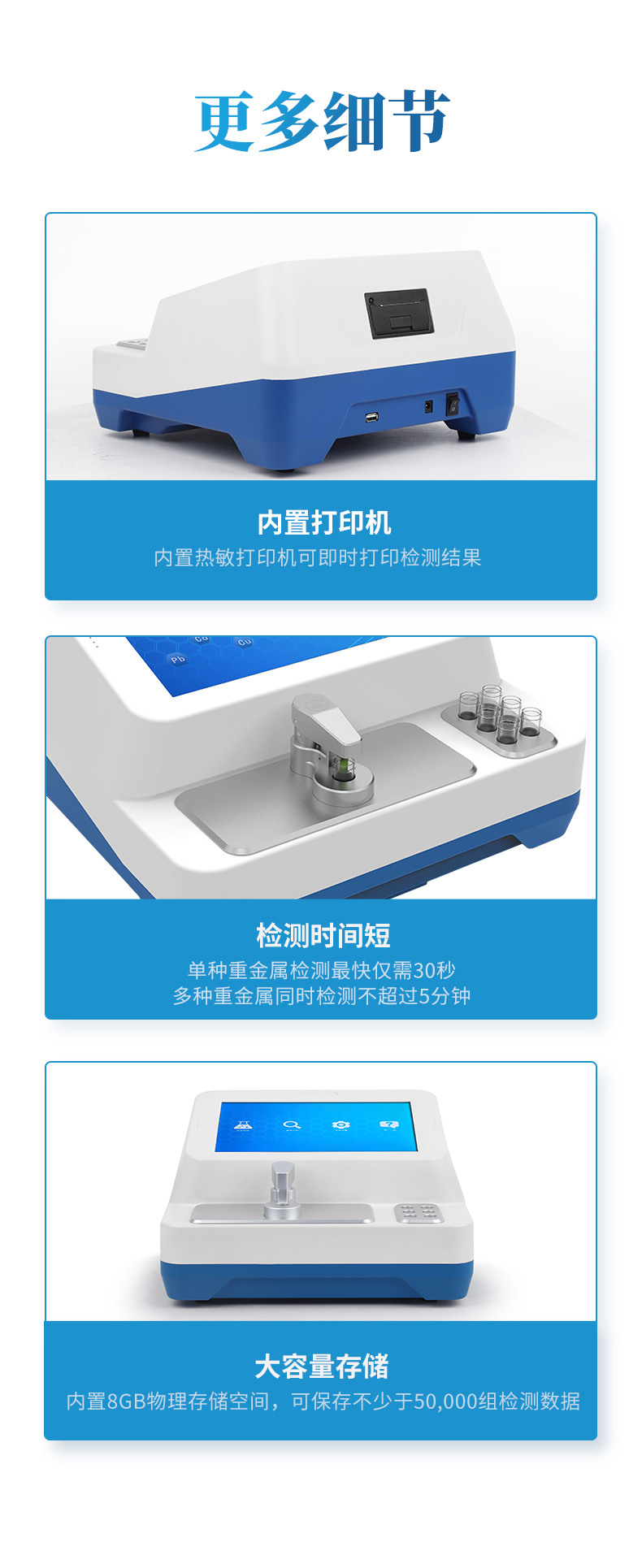 檢測時間短:單種重金屬檢測最快僅需30秒,多種重金屬同時檢測不超過5分鐘。