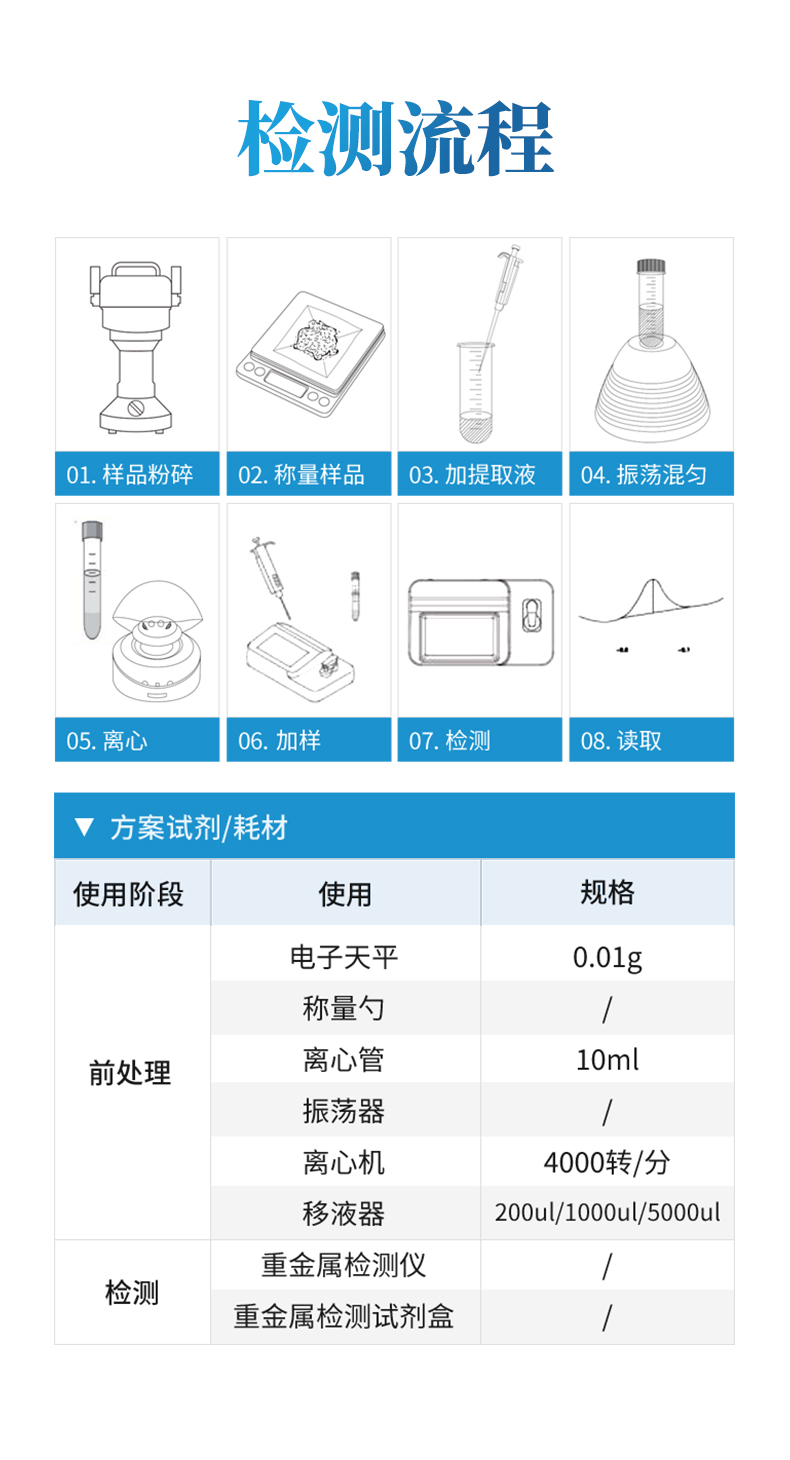 | 檢測項目 | Cd、Pb、As、Zn、Cu、Hg等重金屬 |