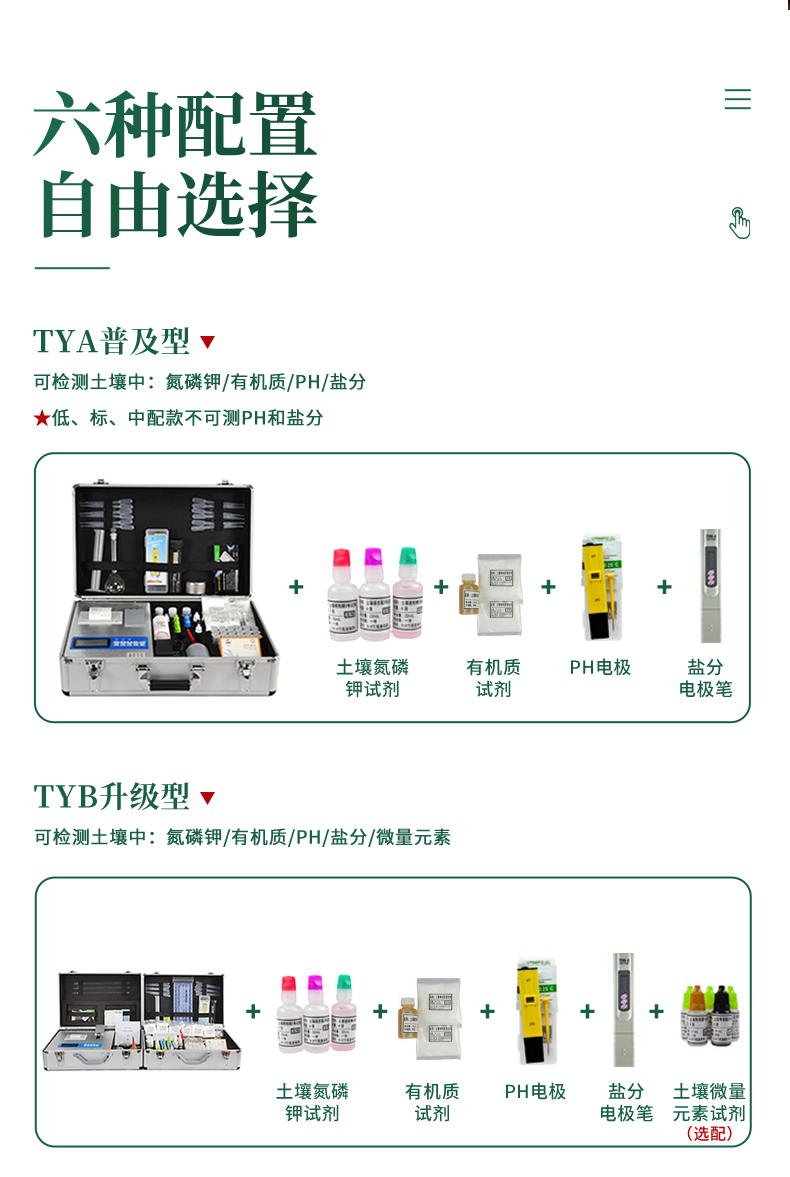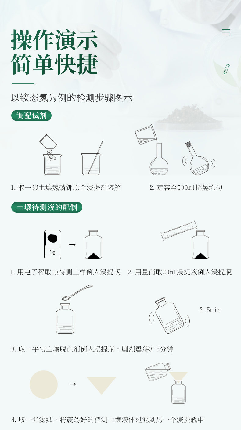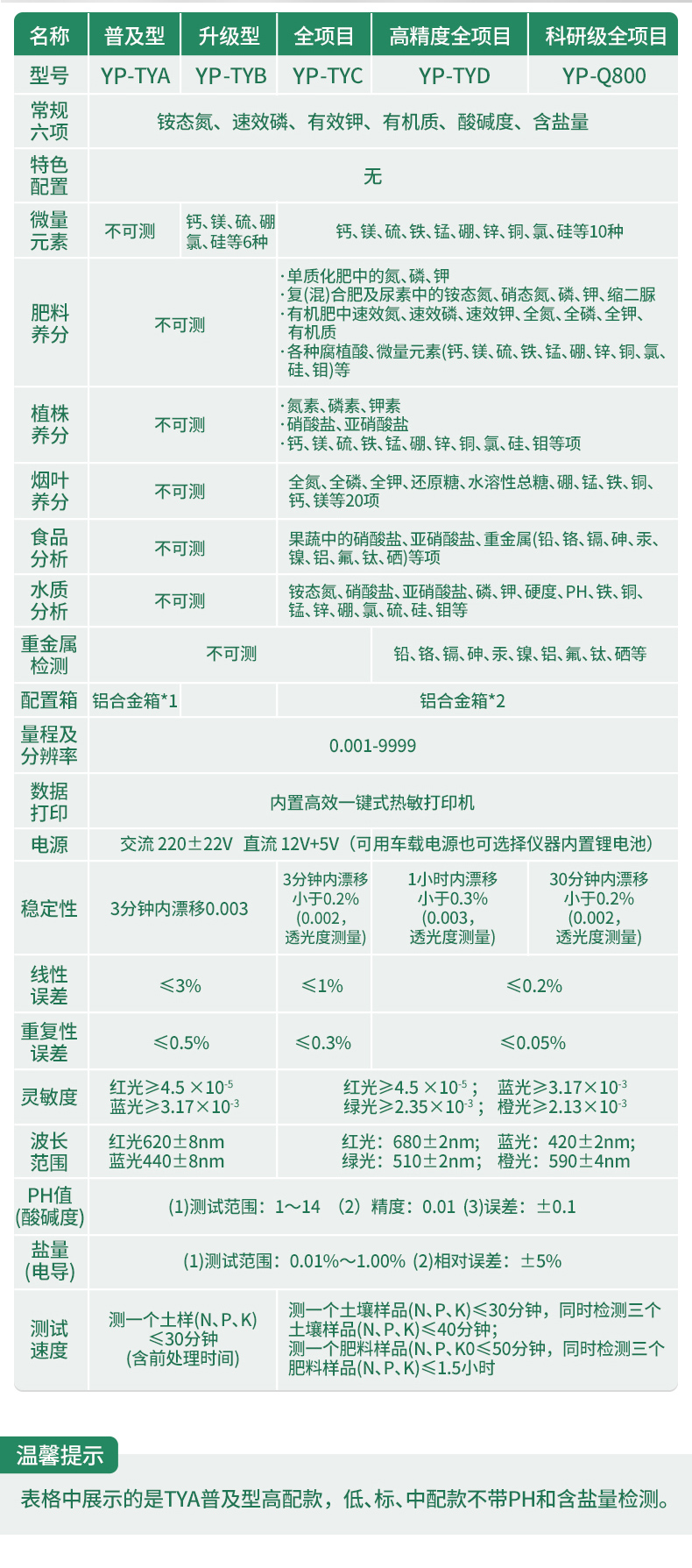 配套齊全:該儀器集藥、器、儀為一體,攜帶方便,相當于一個小型實驗室。適于農業服務部門或農資經銷商、肥料廠商測土施肥和鑒別肥料真假。