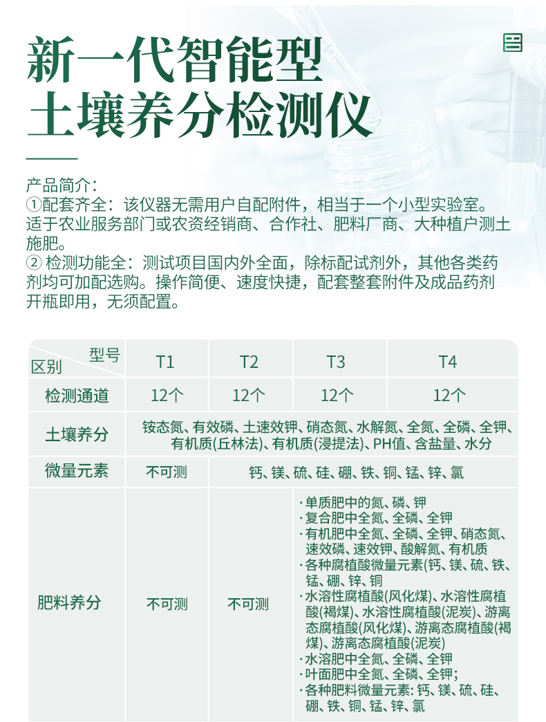 全項目土壤肥料養分檢測儀功能全:測試項目國內外最全(各類藥劑均可選購)。