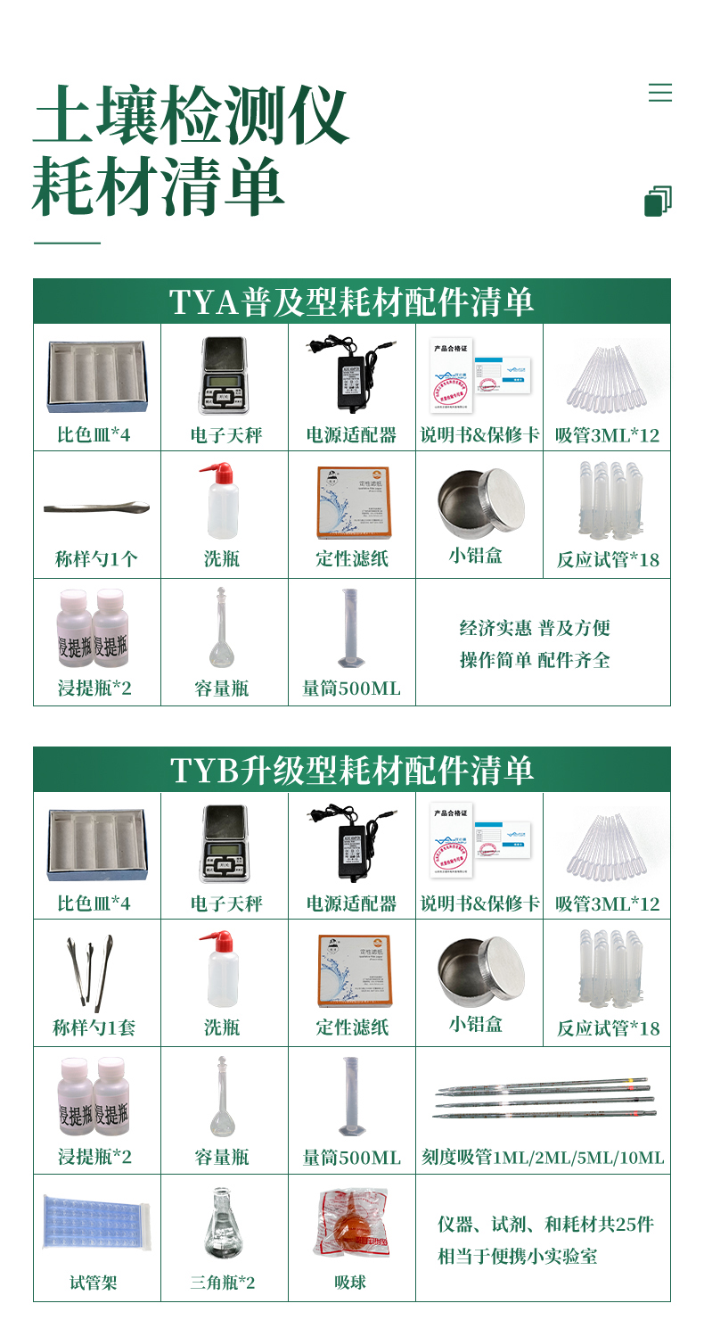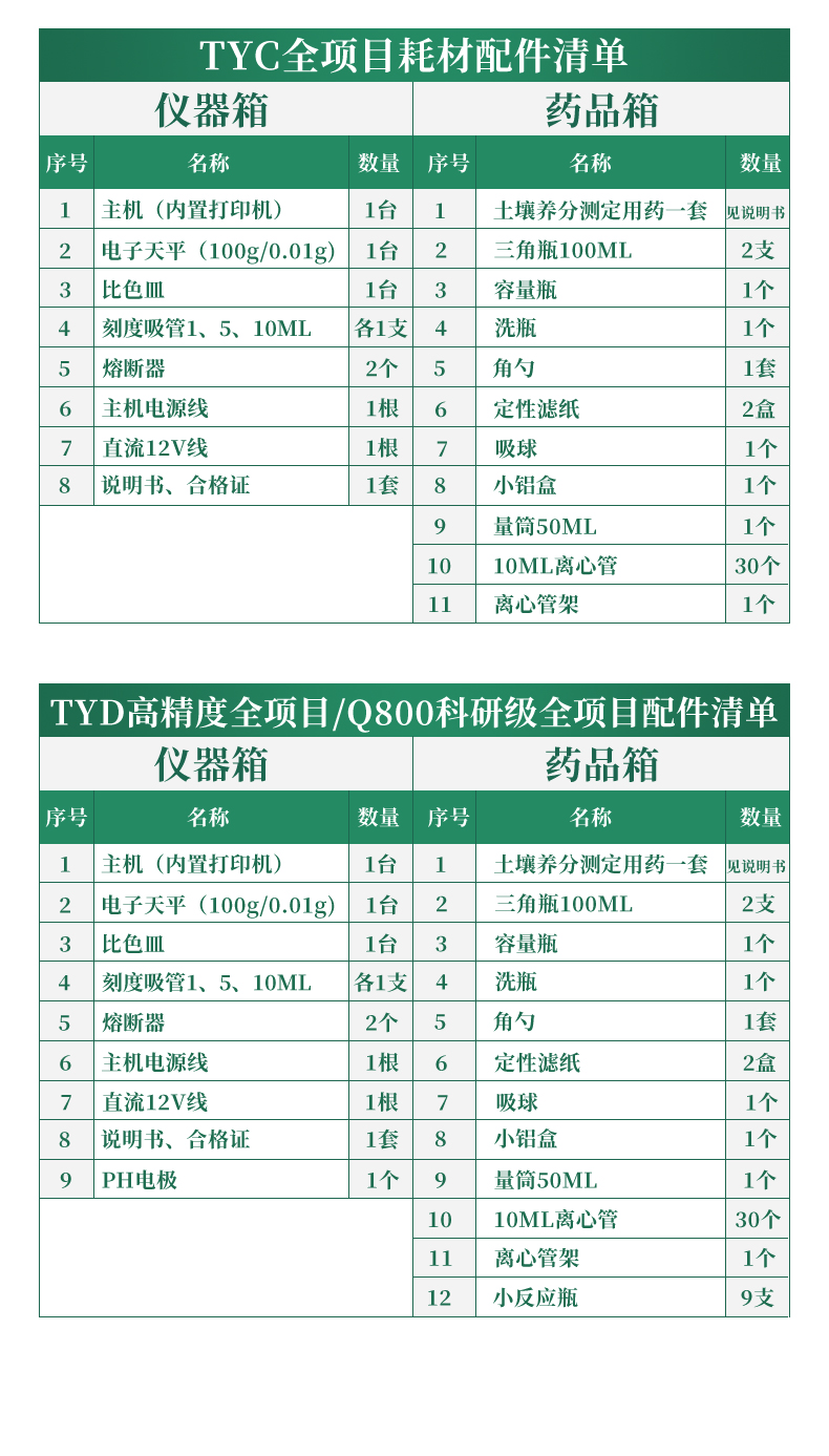 01 | 主機(內置打印機) | 1臺 | 01 | 土壤養分測定用藥一套 | 見說明書 |