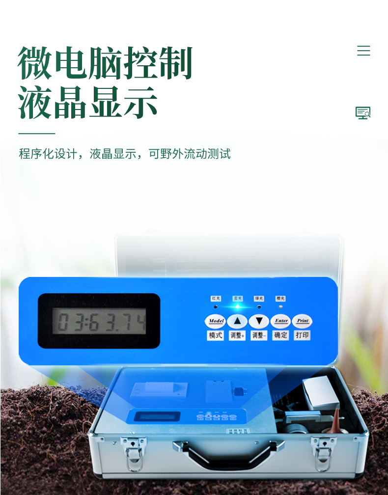 測一個土壤樣品(N、P、K)≤30分鐘,同時檢測三個土壤樣品(N、P、K)≤40分鐘;