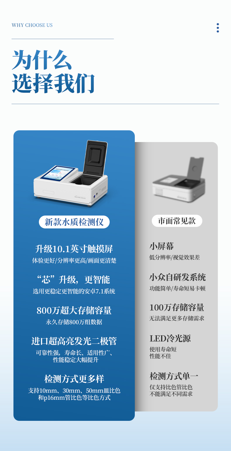 3、采用精密比色池設(shè)計,使用光源一致,可以解決由于光源誤差帶來的檢測結(jié)果誤差問題,檢測結(jié)果更加精準(zhǔn)。