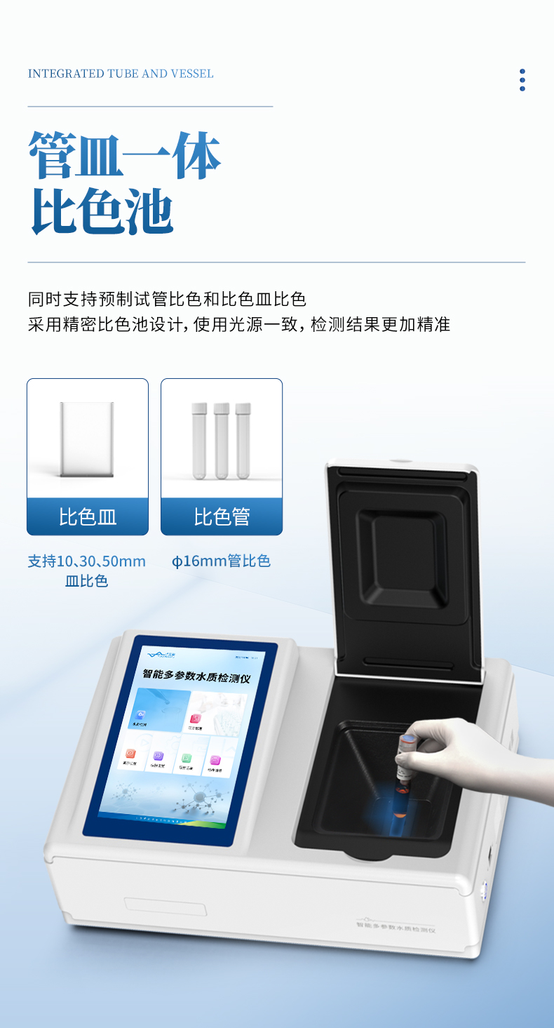 5、支持10mm、30mm、50mm皿比色和φ16mm管比色等比色方式,多元選擇,確保測量的準(zhǔn)確性;