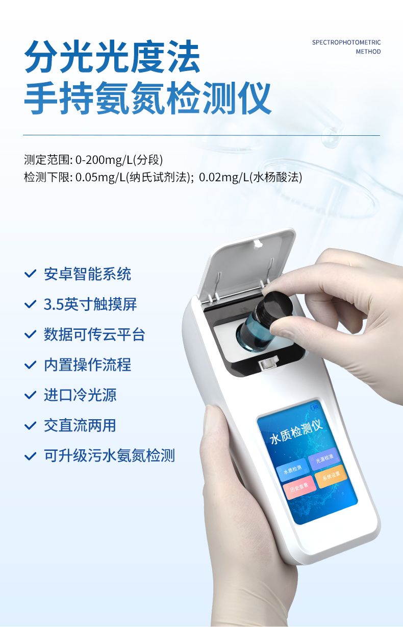 水質氨氮檢測儀是一款適用于工業污水、水產養殖、河流監測、游泳場館等領域的檢測儀,配合快速顯色檢測試劑,可“快速、簡單、準確、穩定”進行測量,擁有精美的外觀造型,簡單的操作界面,準確的檢測系統,幫助用戶獲得精細的數據,可更準確、有效的分析水體狀況,提前預防,及時避免損失。