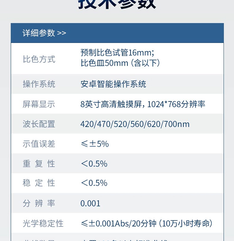 比色方式:預制比色試管16mm;比色皿50mm(含)以下;