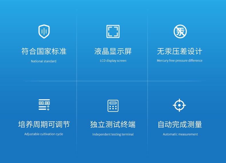 生化需氧量(BOD)測定儀是根據國家標準《HJ505-2009》5日培養法,模擬自然界中有機物的生物降解過程,采用簡單、安全、可靠的無汞壓差感測法測量水中BOD濃度;全智能化設計,領先的研發工藝和設計制造,實驗過程無需實驗人員值守;適用于排污企業、環境監測、污水處理廠、第三方檢測機構、科研、高校等領域的生化需氧量測定。