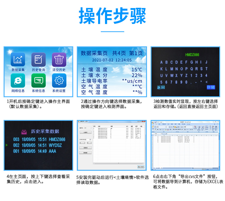 3、大屏幕中文液晶顯示,全程跟蹤記錄各個被測環(huán)境因子的數(shù)值、組數(shù)、低電壓示警,主機內(nèi)置大容量存儲器,可儲存十萬條數(shù)據(jù),具有斷電數(shù)據(jù)自動存儲保護功能。