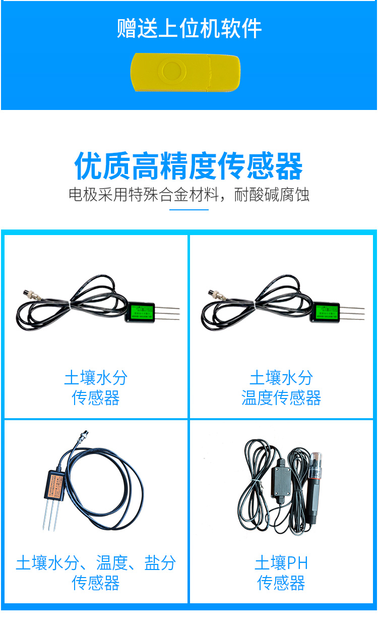 .水分溫度材料特性:不銹鋼(抗電解,可經(jīng)受長期電解,可經(jīng)受土壤中的酸堿腐蝕)