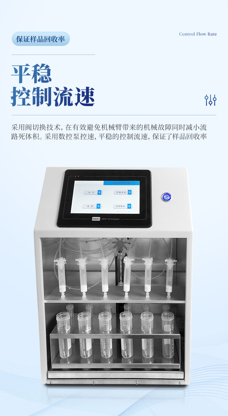 3. SPE全自動固相萃取儀采用數控泵控速,、平穩的控制流速,保證了樣品回收率;