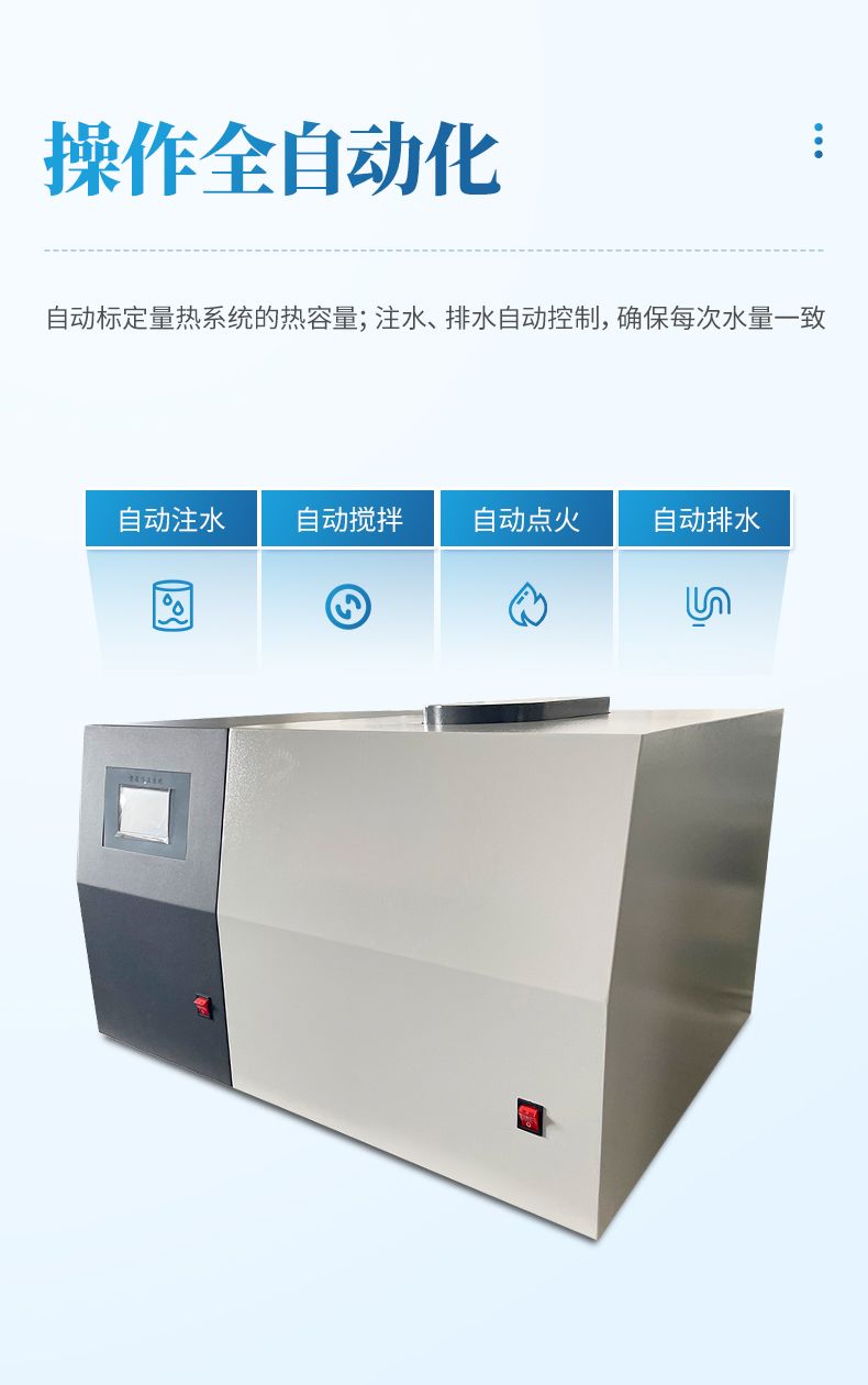 自動(dòng)化程度高、自動(dòng)利用內(nèi)置定容器內(nèi)桶水量,自動(dòng)控制儀器內(nèi)外桶水溫溫差,自動(dòng)完成試驗(yàn)全過(guò)程。