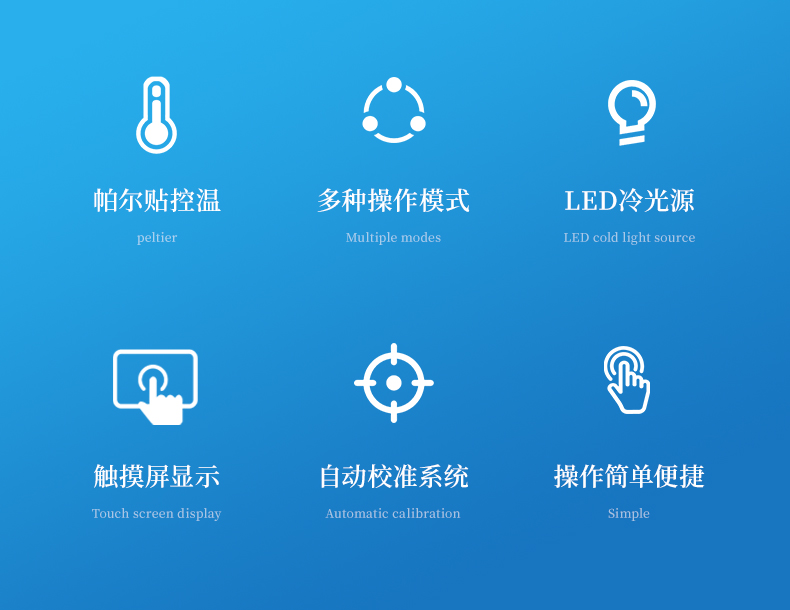 1: 內置帕爾貼控溫,提高精度和穩定性;
