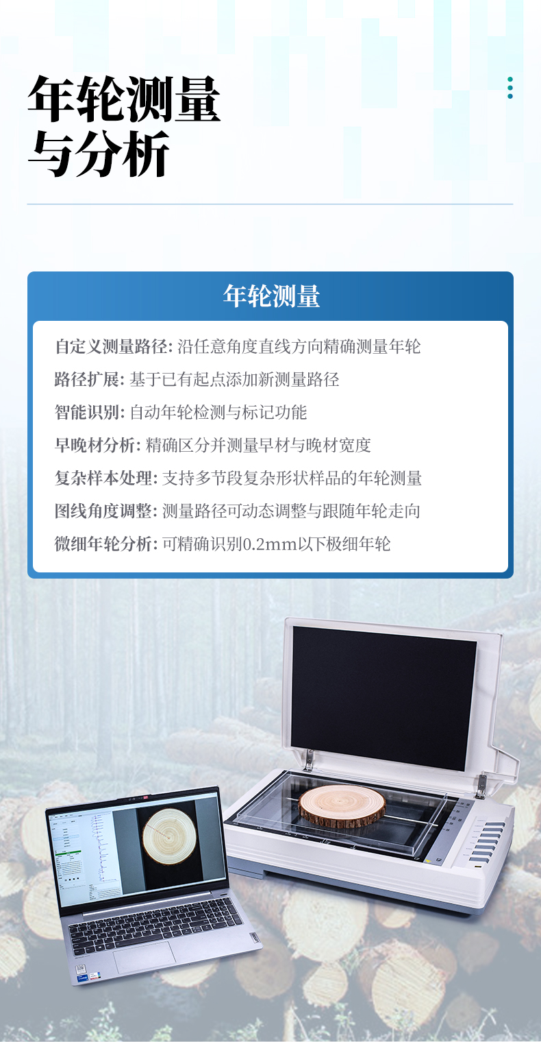 - 自定義測量路徑:沿任意角度直線方向精確測量年輪