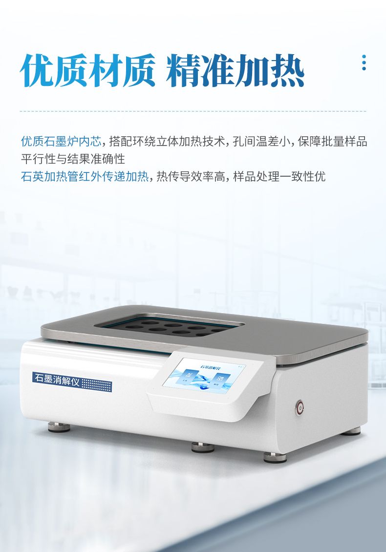 石墨消解儀作為高效的實驗室樣品前處理平臺,廣泛適用于環境監測(土壤、污水、固廢中重金屬消解)、食品與農產品檢測(糧食、肉類中微量元素分析)、農業地質(肥料、飼料、巖石成分分析)以及產品質量控制與科研教學等諸多領域,是各類實驗室進行濕法消解與熱浸提的理想工具。