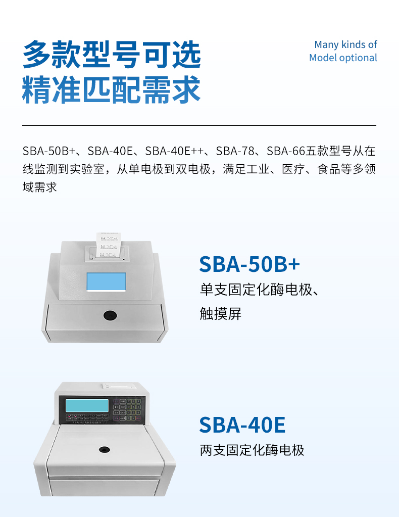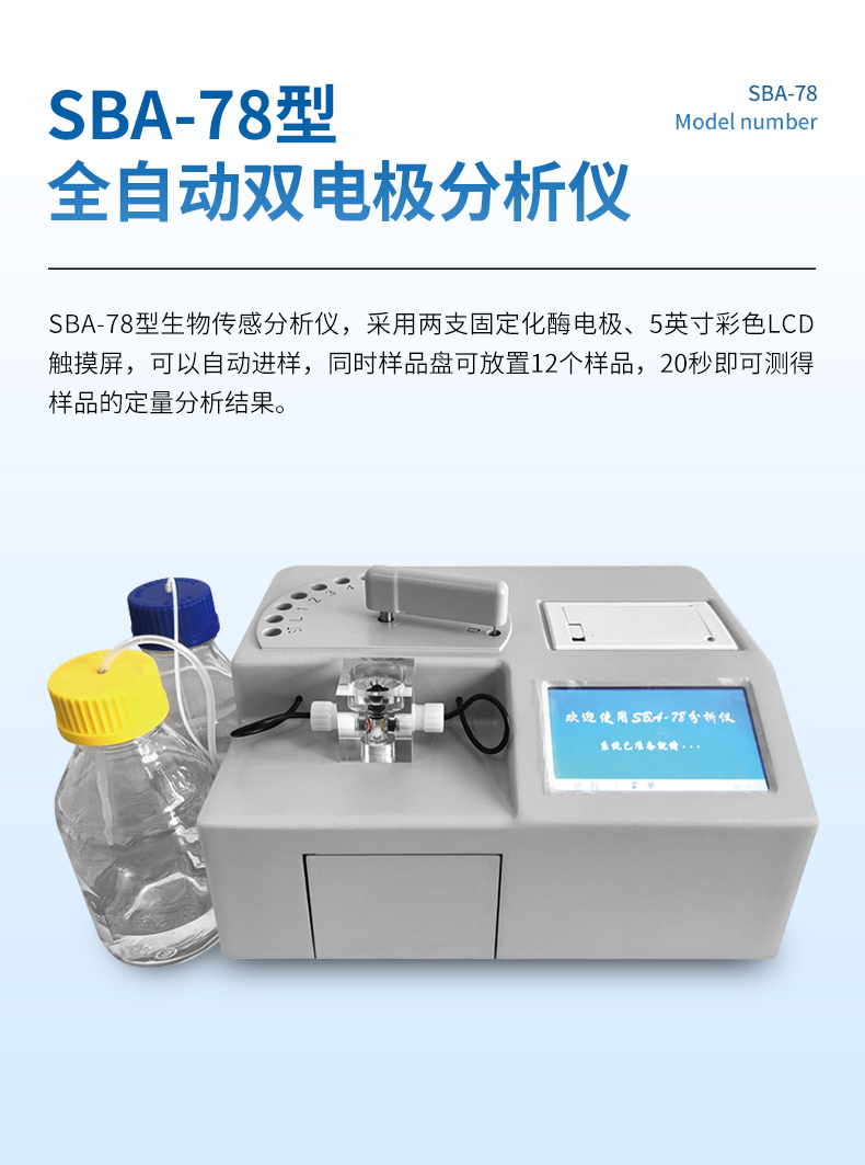SBA-50B+生物傳感分析儀為升級產品,采用單電極結構,是以固定化酶為關鍵元件,由微電腦控制,快速而