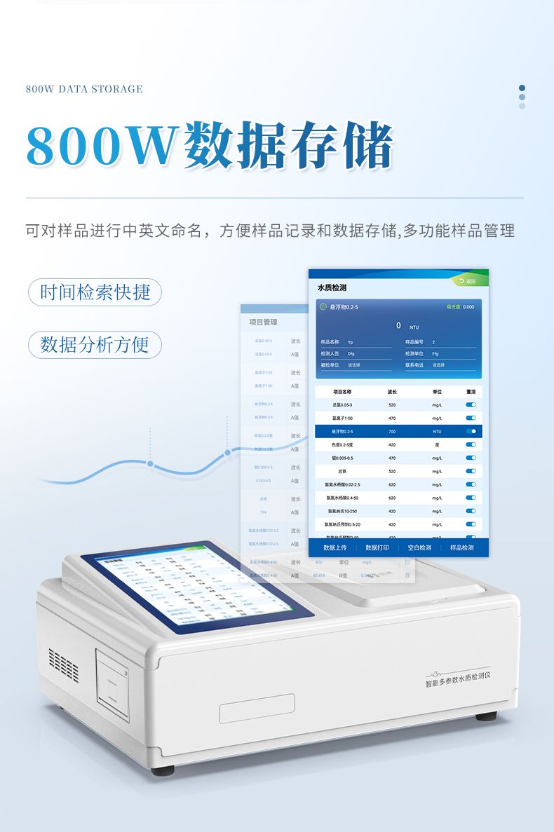 ②配置云監(jiān)控平臺,檢測結(jié)果可直接無線傳至平臺,進行水質(zhì)長短期分析,輔助管理。